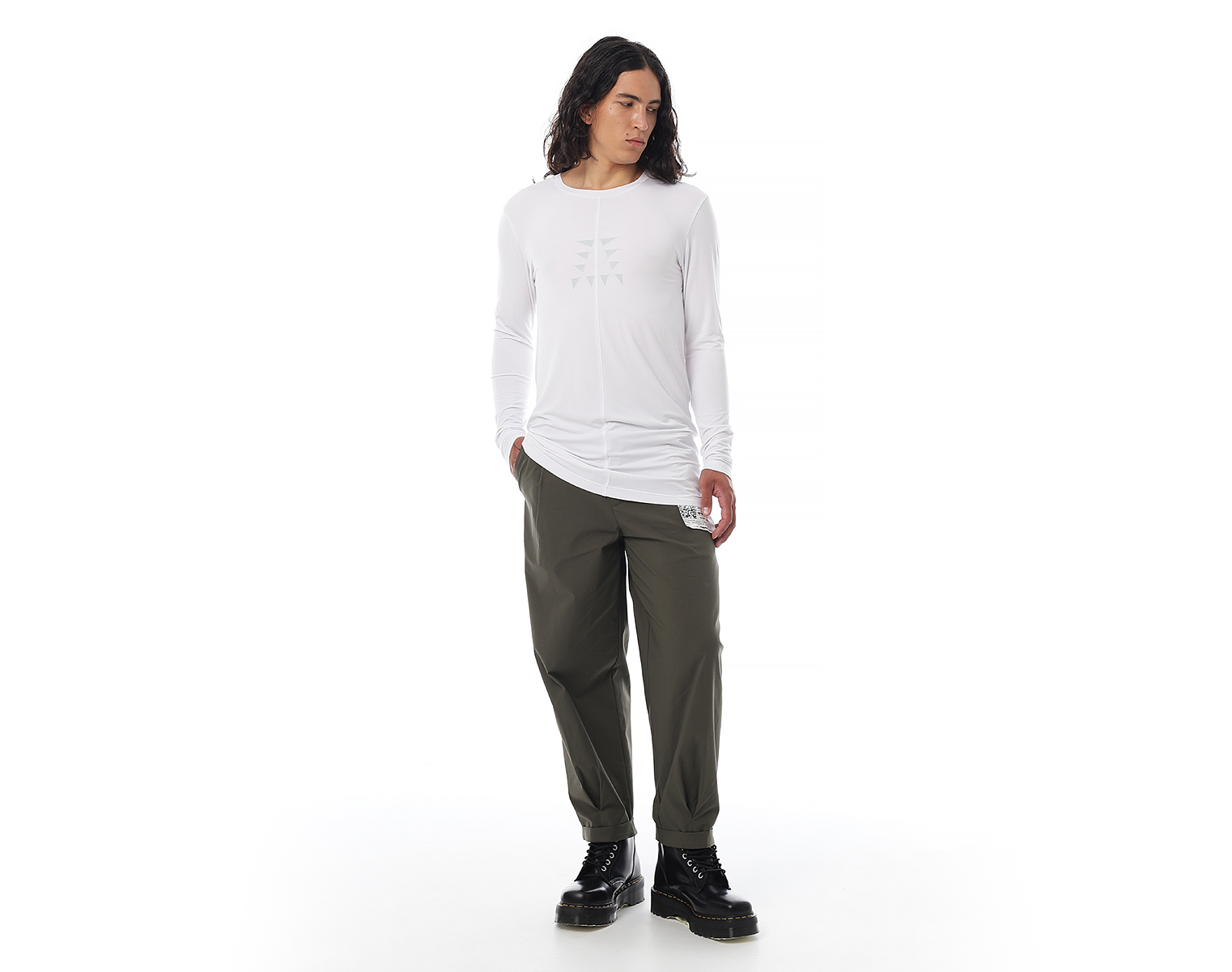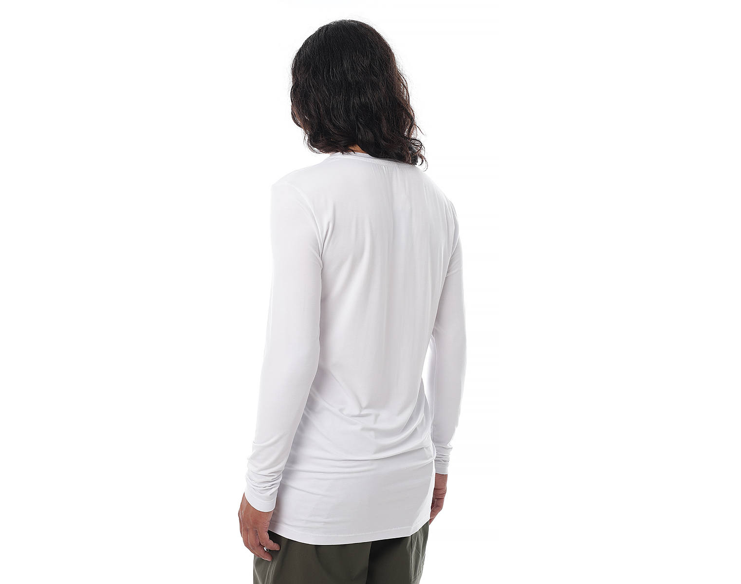 Лонгслив. Пепельно-белого цвета. Слим. 100% хлопок, плотность 180 грамм. Модель декорирована печатью в технике DTF и этикеткой-ярлыком по низу полочки.