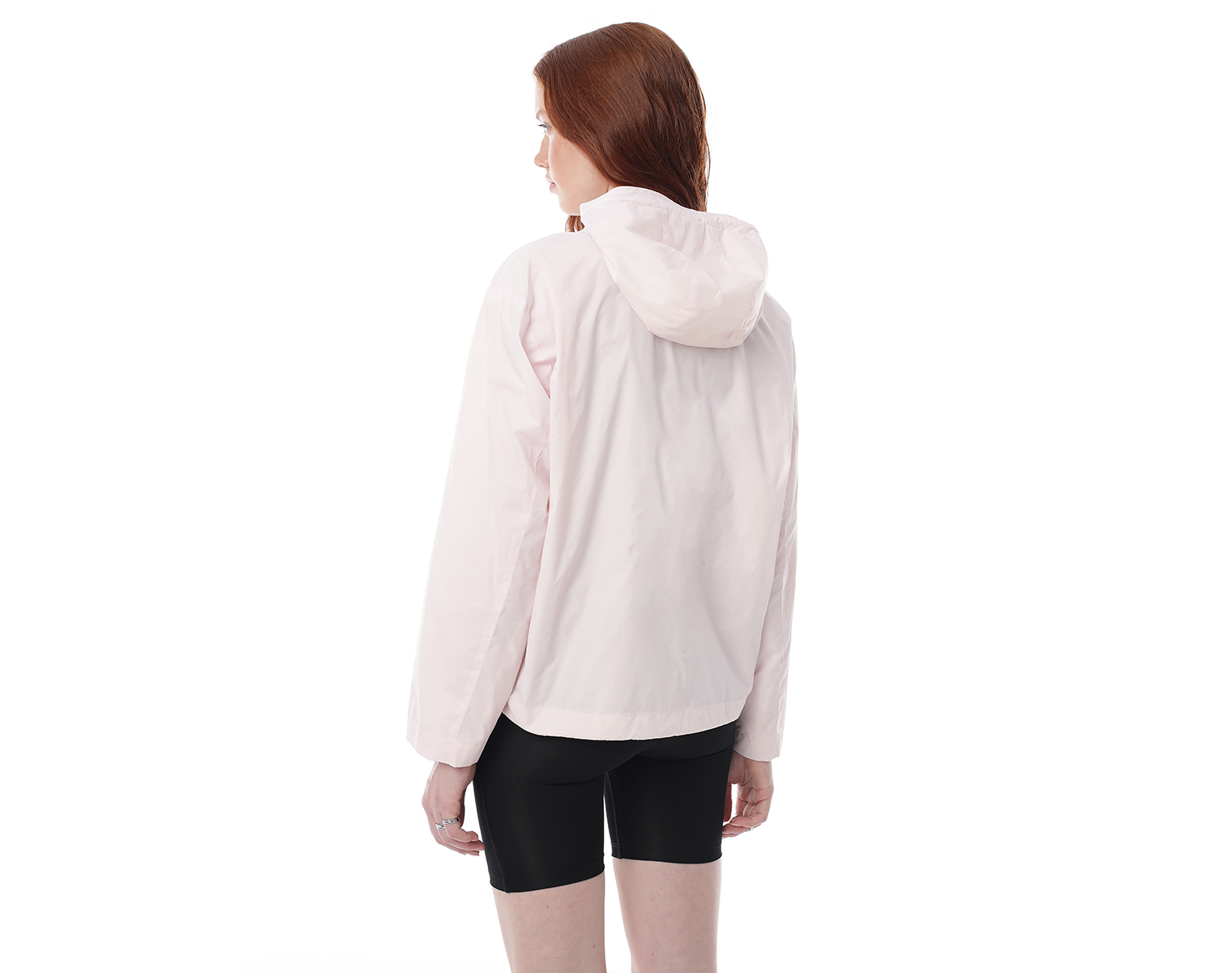 Ветровка на подкладе с капюшоном на молнии. Мидлфит. Бледно-голубая. Модель декорирована печатью в технике "шелкография". Состав ткани верха: 100% нейлон; состав подкладочной ткани: 40% лиоцель, 35% нейлон, 25% купро.