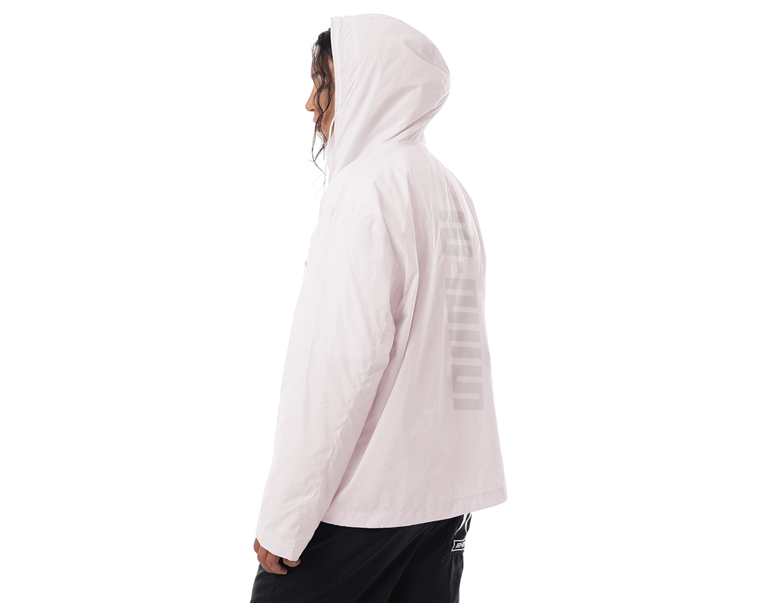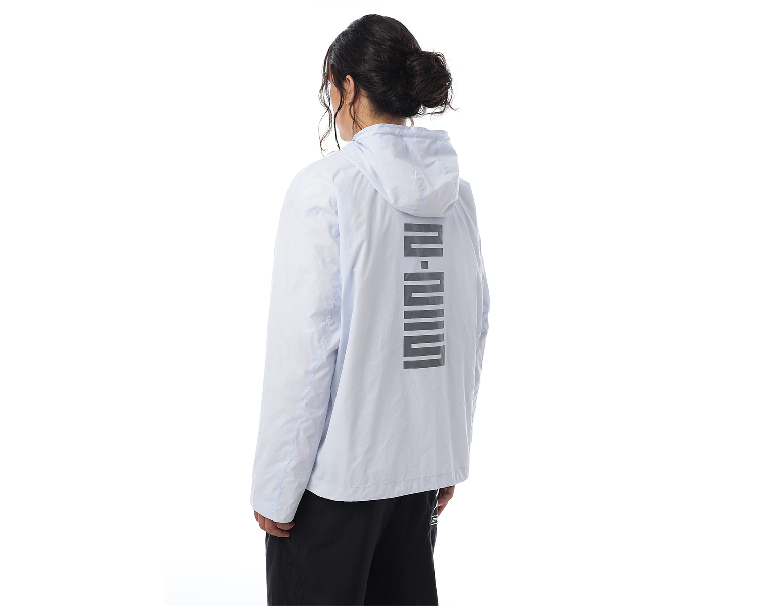 Ветровка на подкладе с капюшоном на молнии. Мидлфит. Бледно-голубая. Модель декорирована печатью в технике "шелкография". Состав ткани верха: 100% нейлон; состав подкладочной ткани: 40% лиоцель, 35% нейлон, 25% купро.